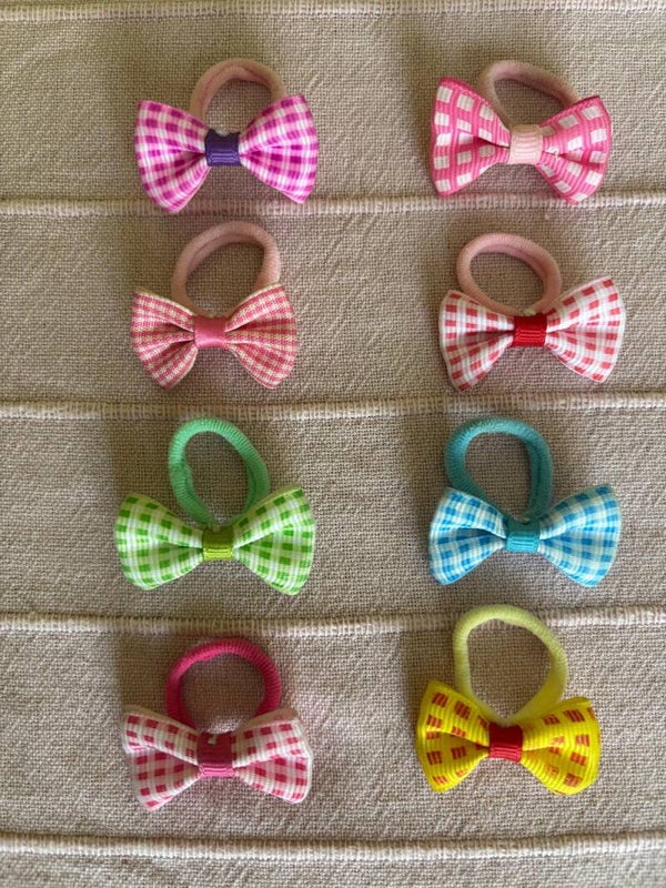 - Lazos de lunares, flores, rayas, dibujos, cuadros, etc . . . con elásticos de nailon.