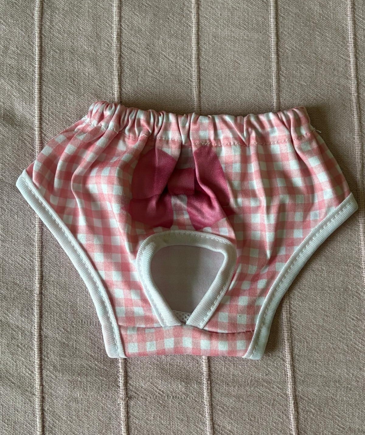 Braguita de cuadros rosa con lazo fucsia.