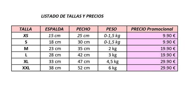 - Disponible desde 9,90€ y en varias tallas (Ver lista de tallas y precios).