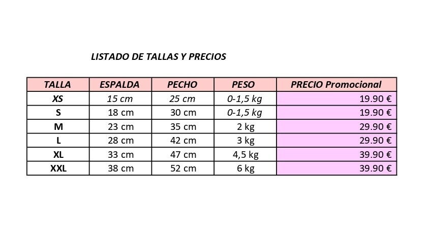 - Disponible desde 19,90€ en varias tallas (Ver lista de tallas y precios).